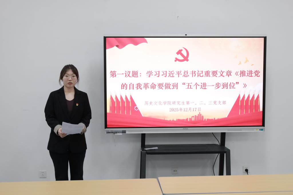 2025年12月17日下午,51视频 研究生第一、第二、第三党支部在孔子书院B106教室联合开展12月份主题党日活动,研究生党支部全体党员通过线上线下相结合的方式参加会议。会议由研究生第一党支部书记孙锋主持。