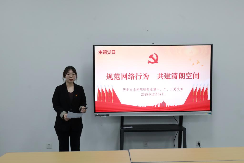 本次主题党日活动的主题是“规范网络行为,共建清朗空间”,由研究生第一党支部徐梦芮同志领学。习近平在主持中共中央政治局第二十三次集体学习时强调,网络生态治理是网络强国建设的重要任务,事关国家发展和安全,事关人民群众切身利益。要健全网络生态治理长效机制,着力提升治理的前瞻性、精准性、系统性、协同性,持续营造风清气正的网络空间。网络生态治理在国家治理中占有重要地位。要在党中央集中统一领导下,健全网络综合治理格局,形成治理合力。各级各部门要强化管网治网的政治责任和领导责任,及时有效解决突出问题,不断提高运用网络了解民意、开展工作的能力。要加强对网络平台、自媒体和多频道网络机构的引导,促使其担负社会责任,自觉成为正能量传播者。同时,网络生态治理是一项系统工程,要充分调动各方力量,综合运用教育、行政、法治等多种手段。要完善网上思想道德教育分众化、精准化实施机制,培育自尊自信、理性平和、积极向上的网络社会心态。要采取政策指导、行政许可等举措,推动行政监管与行业自律相衔接。要统筹推进网络领域立法执法司法普法。当前人工智能、大数据等新技术新应用不断涌现,给网络生态治理带来挑战,也提供新的支持条件。要鼓励网信领域新技术发展,促进研发成果转化和应用场景落地。要完善分级分类的安全监管机制,筑牢网络安全和数据安全防线。其次,网络生态治理是世界各国面临的共同课题。要积极参与国际规则制定,携手各国打击网络违法犯罪,推动构建网络空间命运共同体。要加强国际传播网络平台和能力建设,利用互联网传播中国声音、讲好中国故事,生动展现可信、可爱、可敬的中国形象。最后,学习规范网络行为,党员干部应该牢记六点要求,党员干部在网络上要严守政治纪律和政治规矩;党员干部不准参与发表违背党的基本路线、否定四项基本原则、歪曲党的政策等网络传播行为;党员干部不得参加反对党的理论和路线方针政策的论坛、群组、直播等网络活动;严格规范党员干部在网络平台以职务身份注册账号行为;党员干部应当履行举报监督的义务;切实加强对党员干部网络行为的教育、引导和管理。