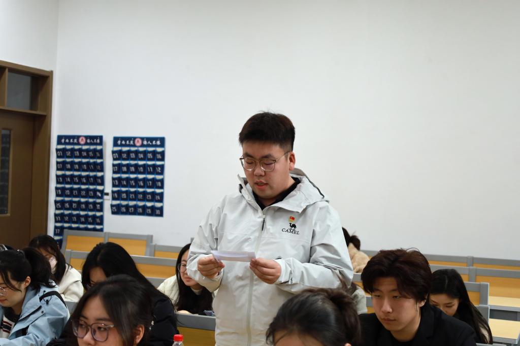会上,研究生第二党支部魏明宇、第一党支部王昊结合自己的生活与学习,分别进行了学习发言。孙锋对本次活动进行了总结,他指出,全体党员同志要认真学习党的二十届四中全会精神,同时也要注意把学习成果转化为实际行动,切实做到愿担当、敢担当、善担当,在专业领域深耕细作、锤炼本领,同时积极将专业所长与国家发展需求相结合,以实际行动为实现“十五五”良好开局、推进中国式现代化建设贡献青年党员的青春力量。