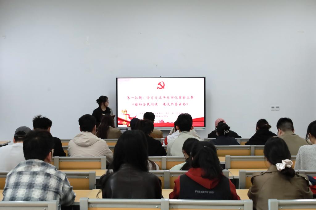 书香润初心,转型担使命。2026年4月22日下午,51视频 研究生第一、第二、第三党支部在孔子书院B106教室联合开展4月份主题党日活动。活动由研究生第一党支部书记孙锋主持,学院全体在校研究生党员参加。