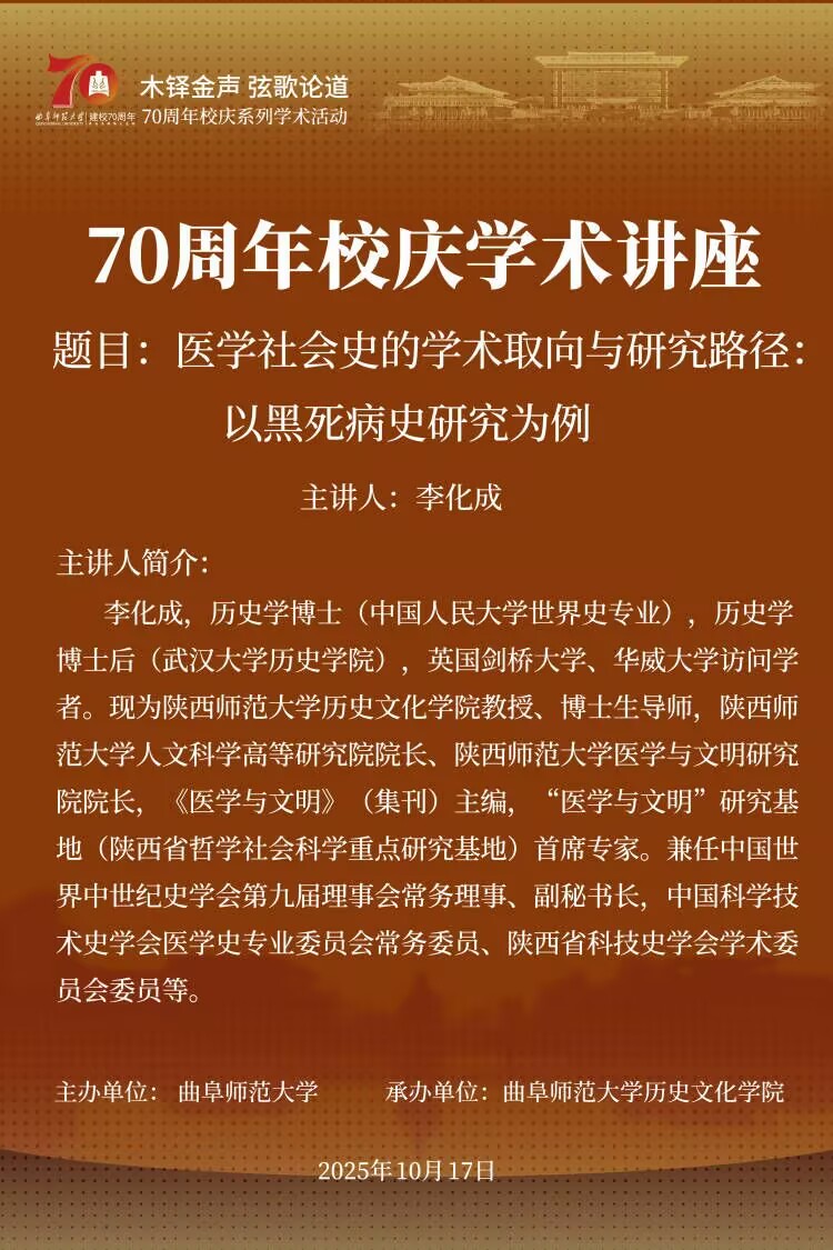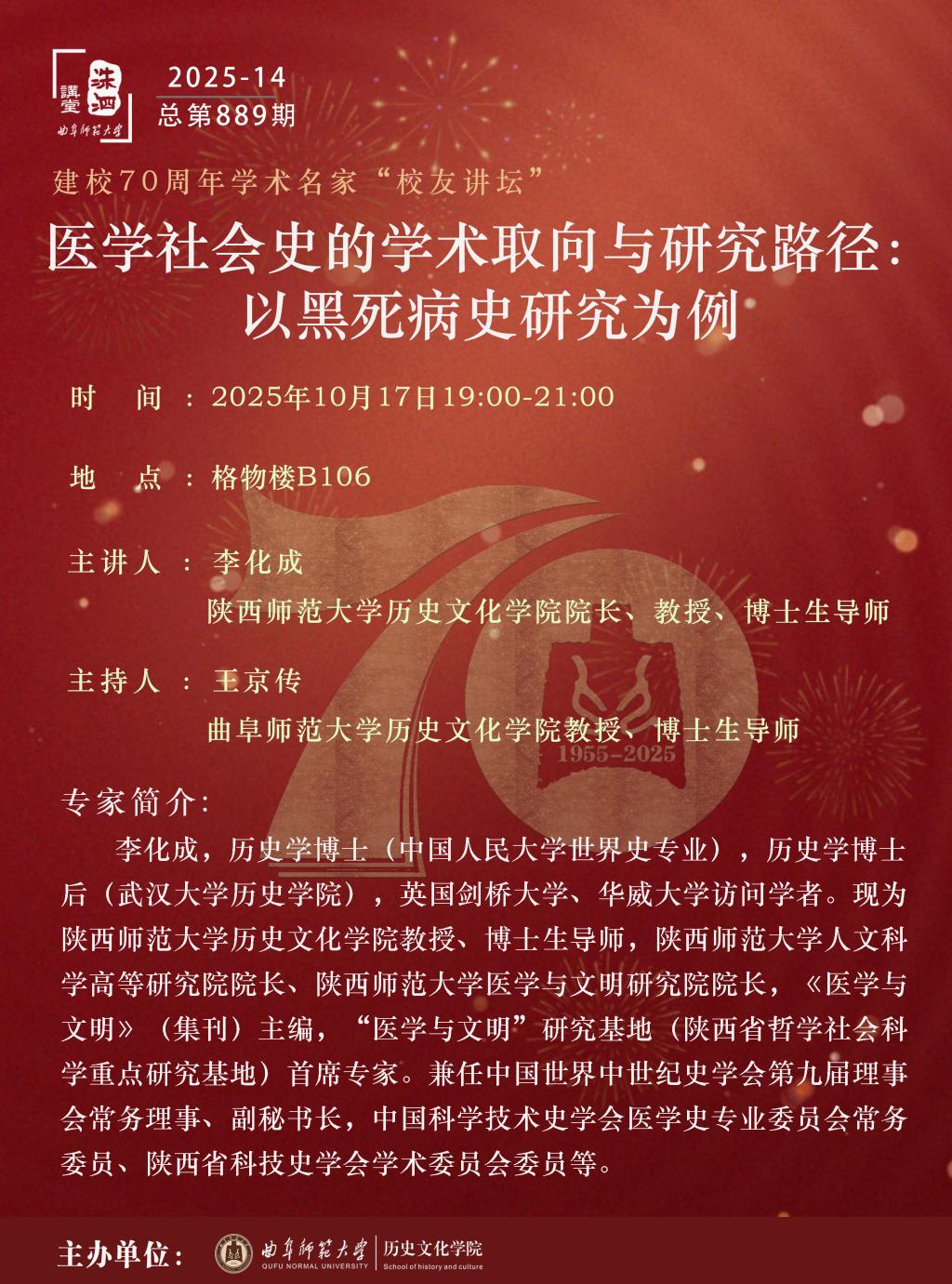 洙泗讲堂预告|李化成:医学社会史的学术取向与研究路径:以黑死病史研究为例
