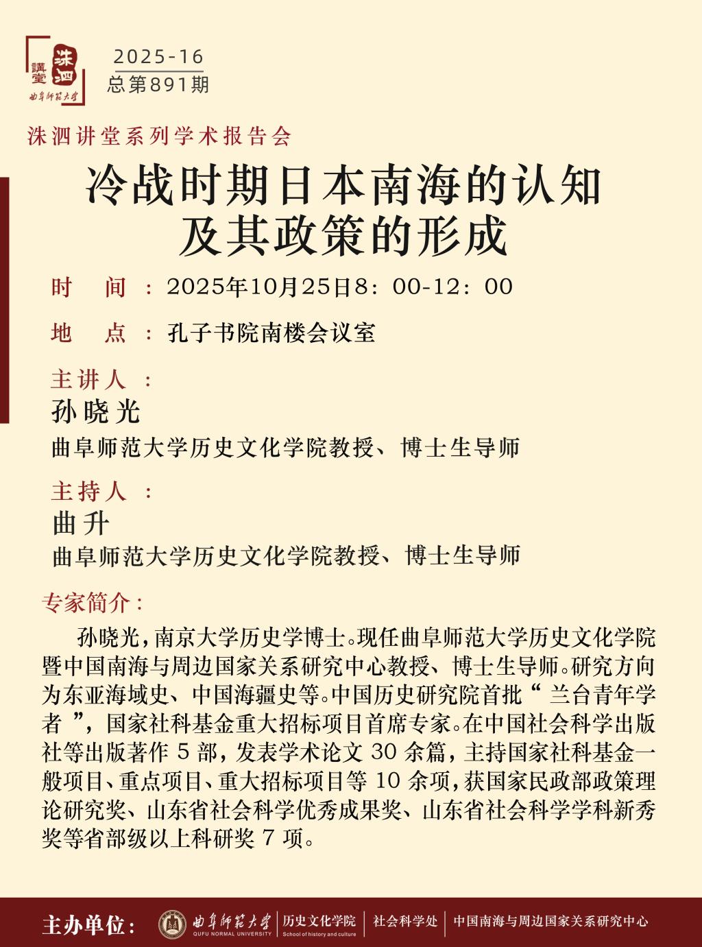 洙泗讲堂预告 | 孙晓光:冷战时期日本南海的认知及其政策的形成