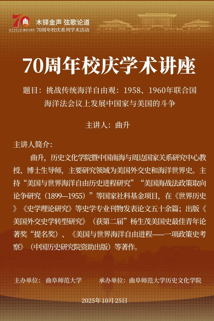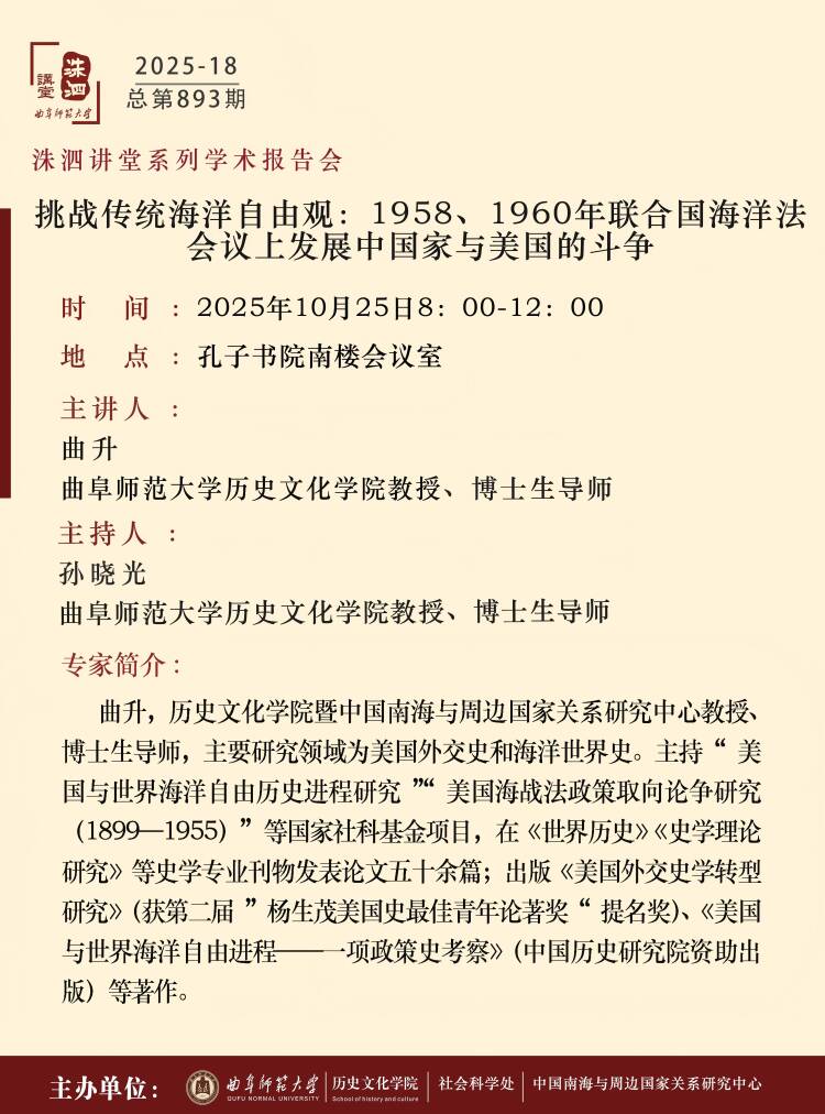洙泗讲堂预告 | 曲升:挑战传统海洋自由观:1958、1960年联合国海洋法会议上发展中国家与美国的斗争