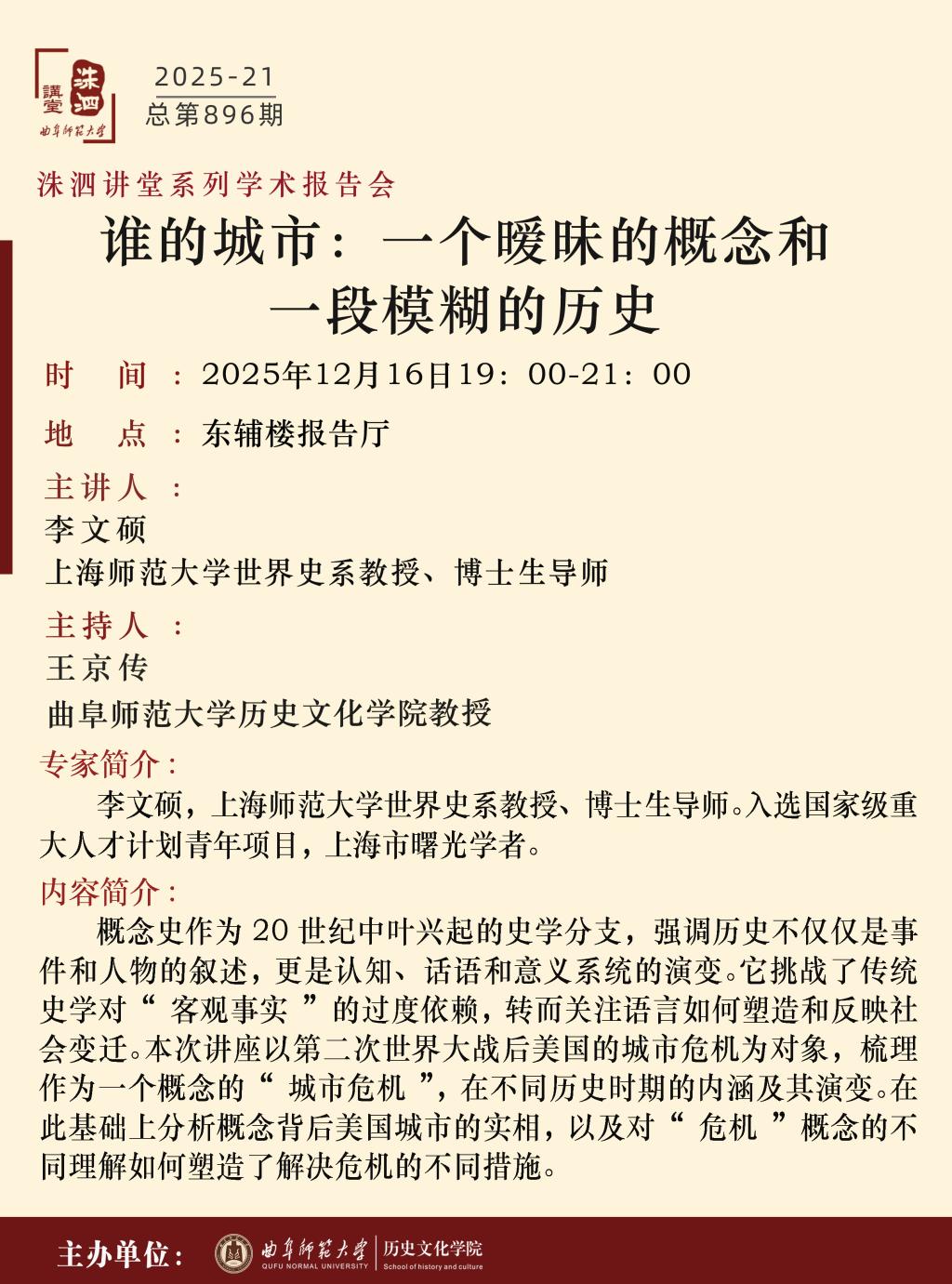 洙泗讲堂预告|李文硕:谁的城市:一个暧昧的概念和一段模糊的历史