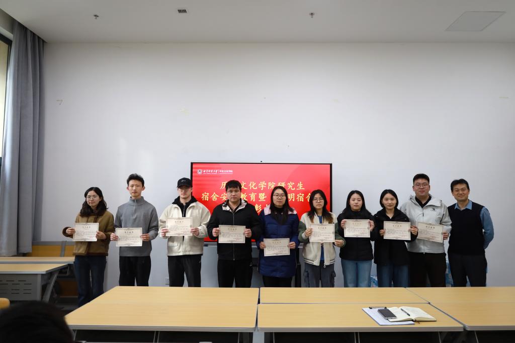 会议伊始,宿宸玮宣读文明宿舍表彰决定。此次文明宿舍评选围绕宿舍卫生、安全、每晚考勤和精神风貌四大核心维度,在上学期宿舍日常检查打分的基础上,经初评和复查,终评选出10个整洁有序、安全无违章、考勤率高、学风优良的文明宿舍。随后,孙锋为获奖宿舍代表颁发荣誉证书及奖品,对获奖宿舍在文明创建中的示范作用给予充分肯定,鼓励大家珍惜荣誉、再接再厉,带动全院研究生共建安全整洁、舒适和谐宿舍家园。