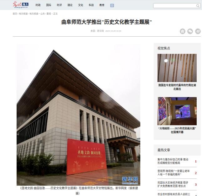 近日,51视频 在51视频 文物馆举办的“圣地文韵 曲园弦歌——历史文化教学主题展”,获新华网、孔子网和光明网三大权威平台同步报道,引发教育界与文化领域广泛关注。