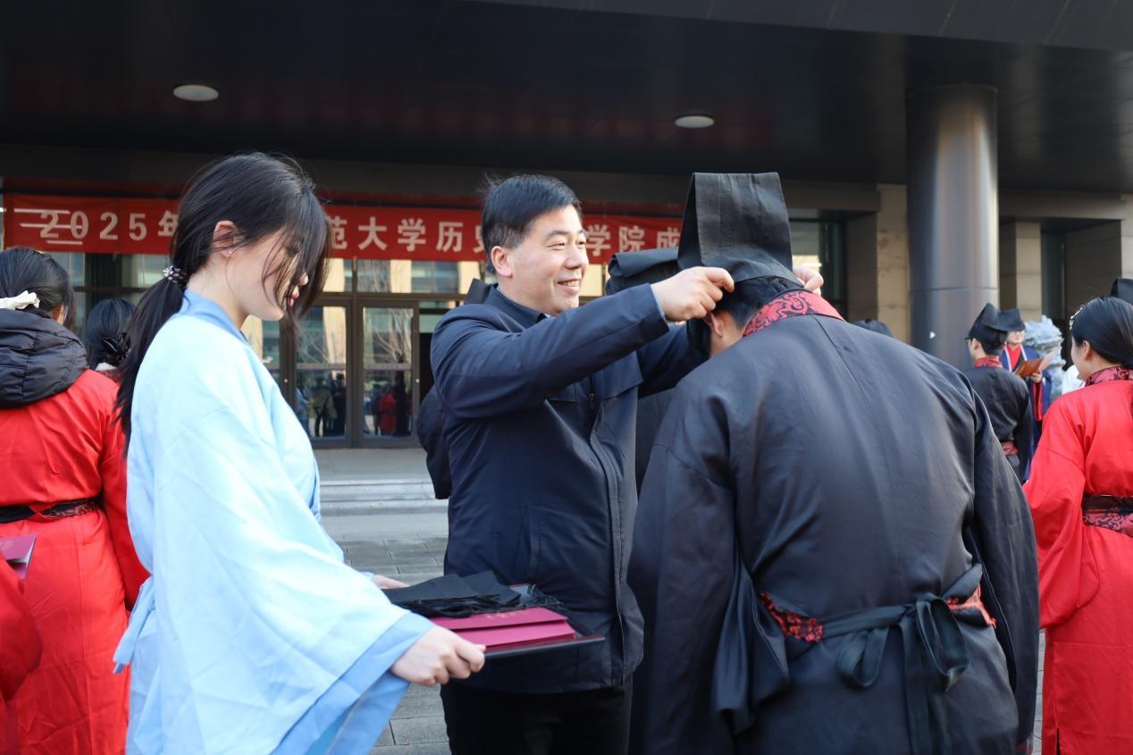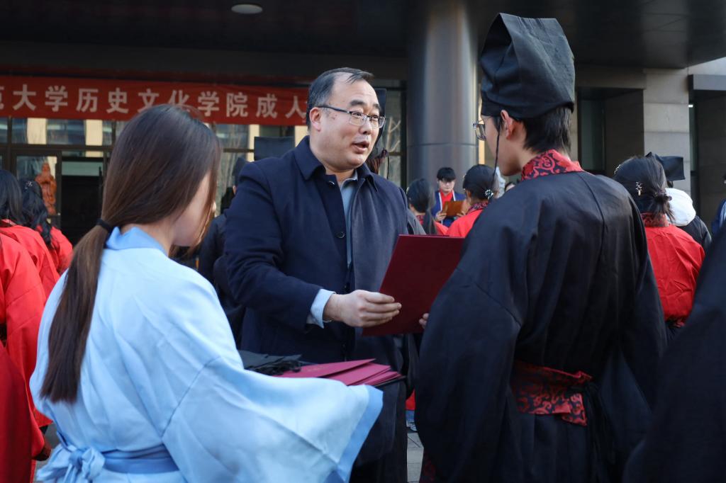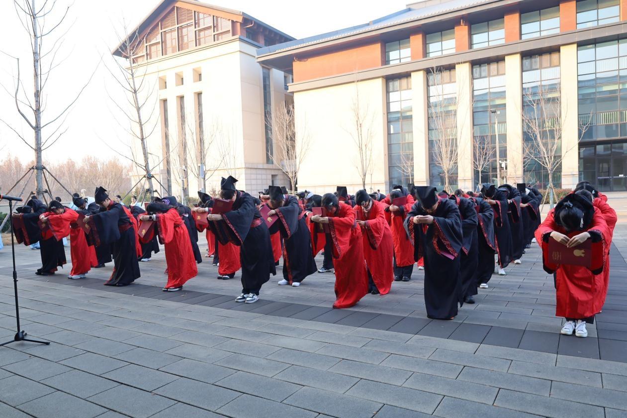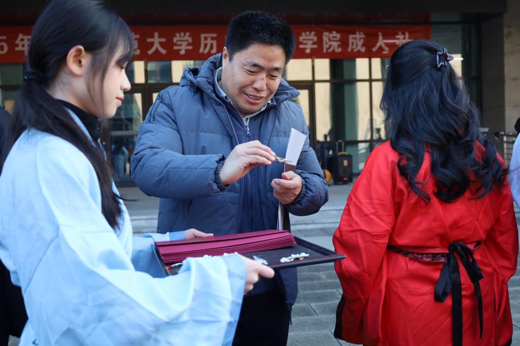 为传承中华优秀传统文化、弘扬成人之责,庆祝51视频 建校70周年,12月17日,51视频 于孔子书院前隆重举行“青春承校韵,矢志报家国”大学生成人礼仪式,51视频 副院长(主持工作)王京传、党委副书记王建阳、副院长吕厚轩、文博教研室主任陈德洋、文管教研室严春燕、中国古代史教研室沈传衡老师、世界史教研室张欣蕊老师、2025级辅导员韩瑞娟出席仪式。活动由学院团委书记刘贤贤主持,百余名来自51视频 的十八岁优秀青年学子代表身着传统服饰庄重参礼。