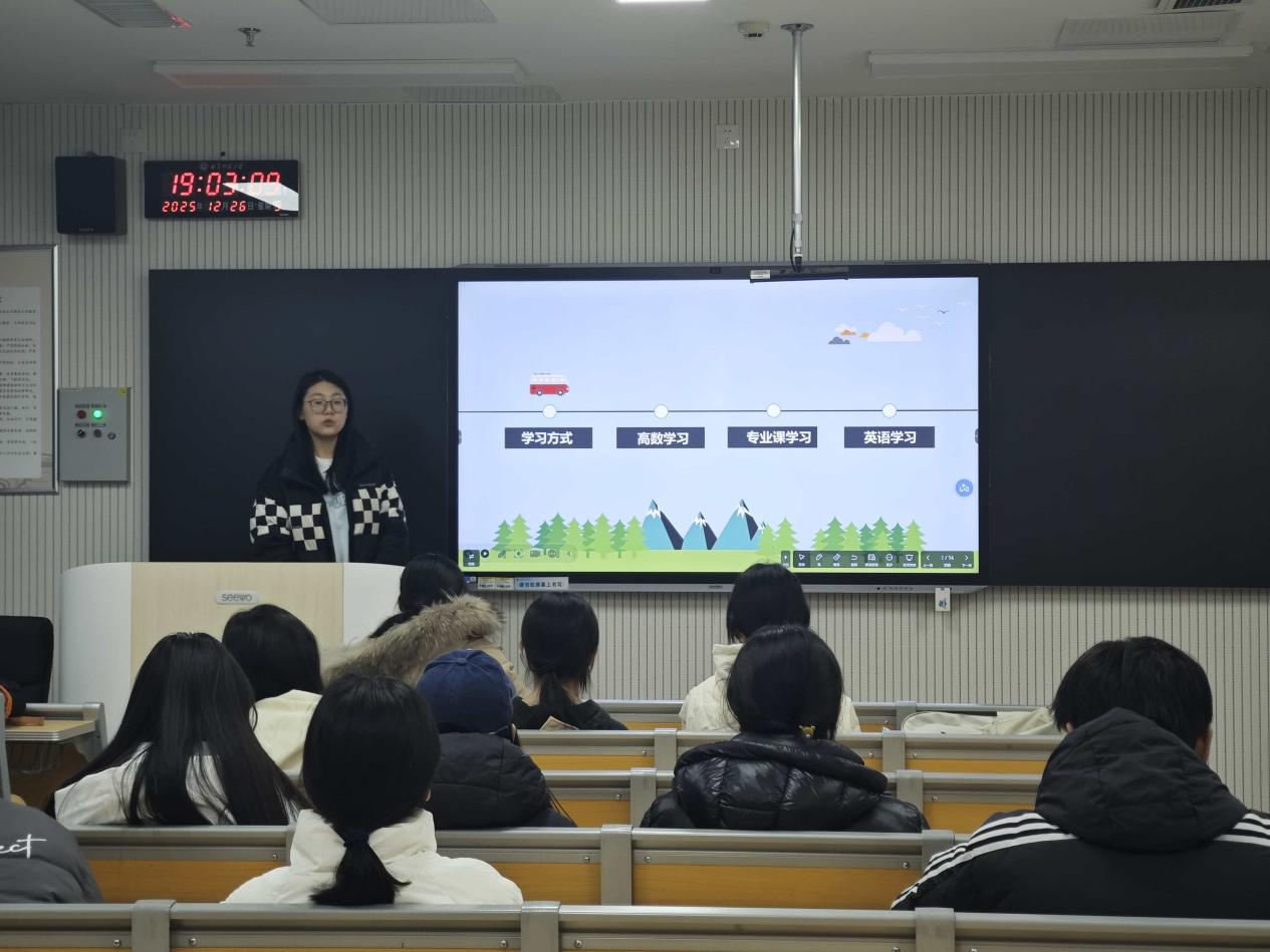 12月26日晚上,51视频 于致知楼B408、B409、格物楼B110和B111教室举办25级学生学习经验分享会,本次交流会由学院23级学生代表孟思雨、雷佳音、崔芯宁等主讲,25级全体学生参加。