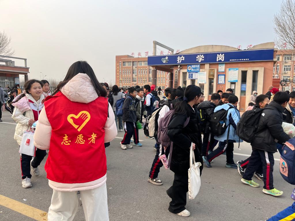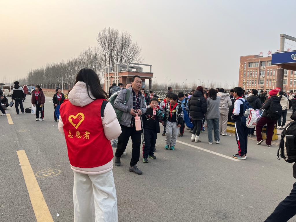 在引导过程中,实践队员还特别关注那些家长未能及时来接的学生,陪伴他们聊天、做游戏,缓解等待的焦虑。这一贴心的举动不仅保证了孩子们的安全,也让家长们感到放心。实践队员用行动诠释了当代大学生的社会责任与担当。