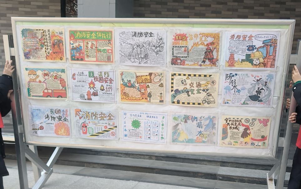 为巩固学习成果、激发创作热情,实践队精心组织 “我心中的消防安全” 主题手抄报绘画活动。孩子们拿起画笔,将消防标志、逃生技巧、消防员英雄形象及对安全生活的向往融入画作。随后,队员们将作品集中悬挂于社区公共展示区,既美化了社区环境,更打造出传递安全知识的 “可视化窗口”,让安全理念在潜移默化中深入人心。