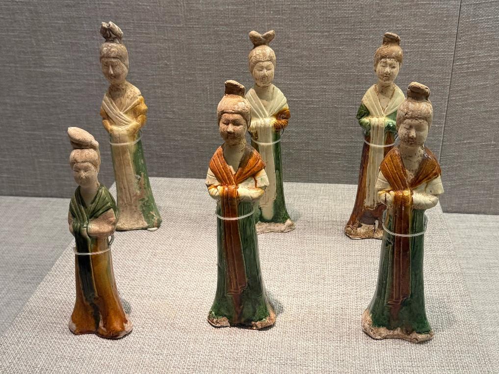 参观完主展厅后,实践队成员们专程来到二楼的唐三彩专题展厅,深入探索这一唐代艺术瑰宝的文化内涵与时代价值。