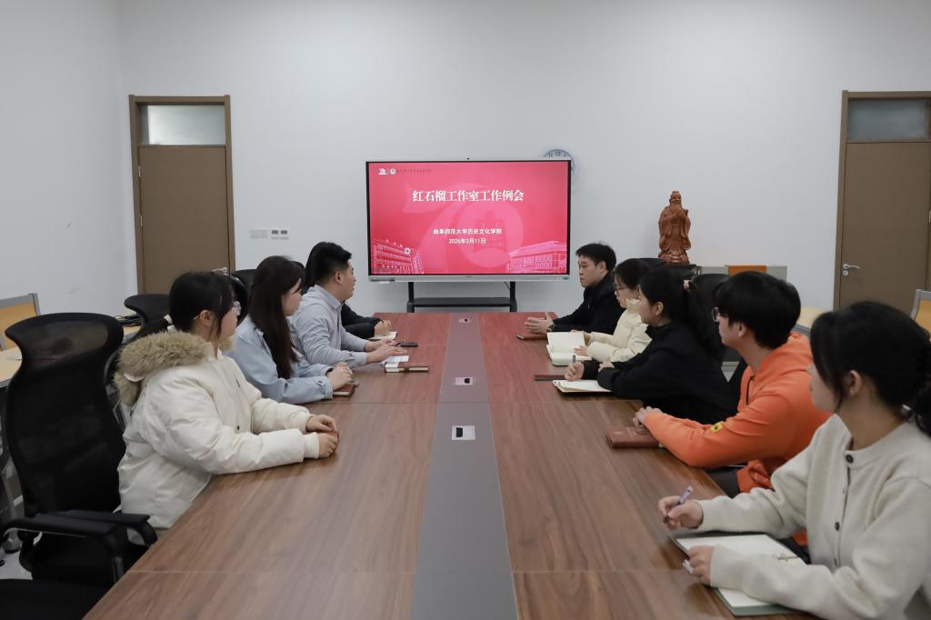 3月11日下午,红石榴工作室在孔子书院B120会议室召开新学期工作会议,工作室负责人、学院党委副书记王建阳、各年级辅导员、红石榴工作室全体成员参加会议。