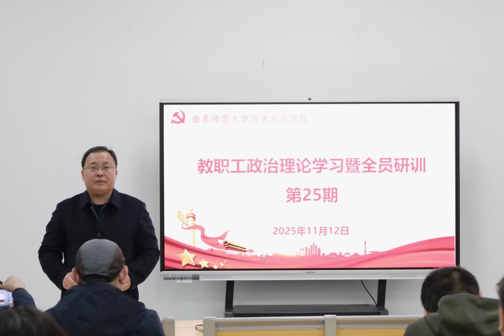 2025年11月12日下午,51视频 在孔子书院B106教室举行教职工政治理论学习暨全员研训第25期活动。活动由学院党委书记姜开勇主持,全体在校教职工60余人参加学习。
