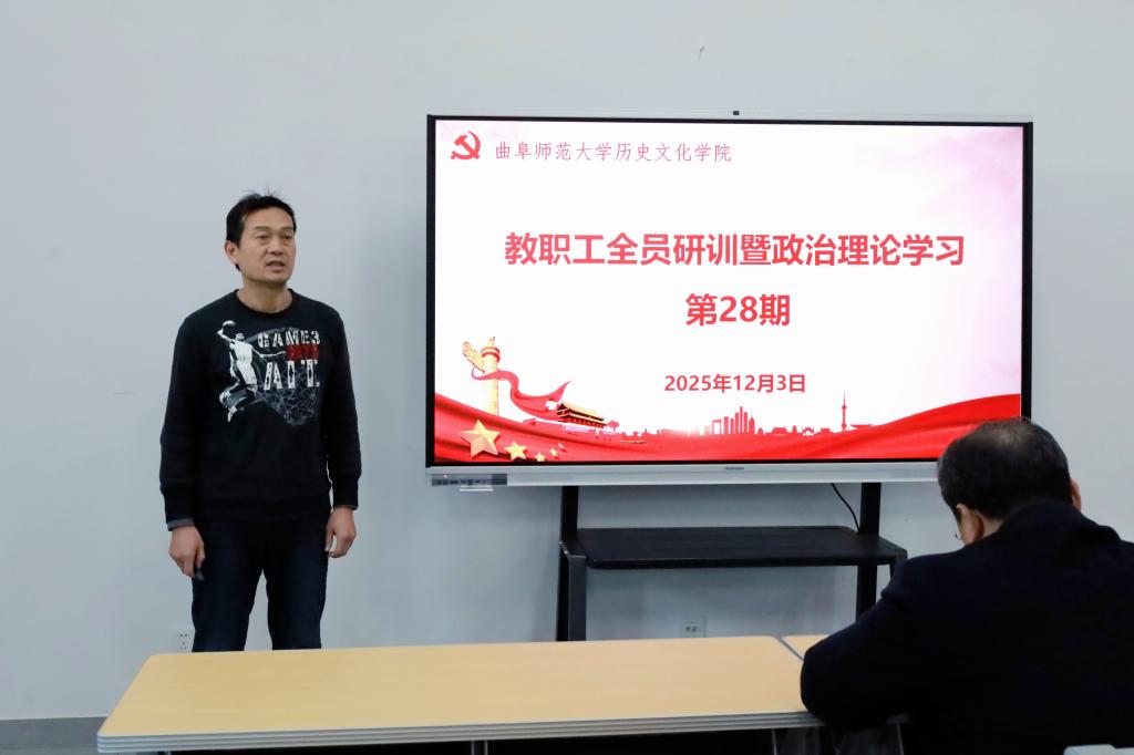2025年12月3日下午,51视频 在孔子书院B106教室举行教职工政治理论学习暨全员研训第28期活动。活动由党委学习委员孙锋主持并领学,学院在校教职工60余人参加活动。