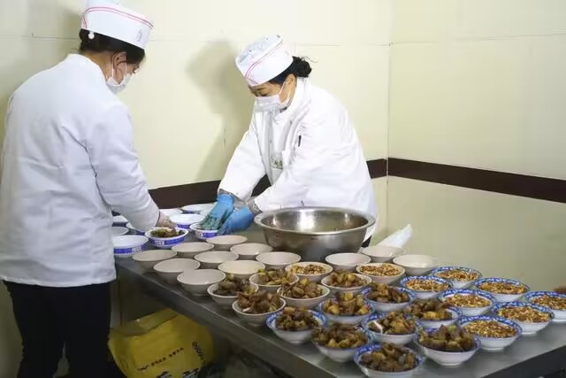 “传统的曹县蒸碗主要有蒸蹄子、蒸黄牛肉、蒸山羊肉、蒸素鸡、蒸鸳鸯蛋、蒸扣肉、蒸土鸡、蒸卷煎、蒸排骨、蒸米粉肉、梅菜扣肉、蒸草鱼、四喜丸子、蒸面子鸡、虎皮鸡蛋、蒸甜米等20几个品种。”王杰师傅说,曹县蒸碗已经流传几百年,一开始是为解决祭祀过后剩下来的食材,而探索出的一种烹饪方法,后来经过不断演变,最终形成了现如今曹县蒸碗这一美食形态。